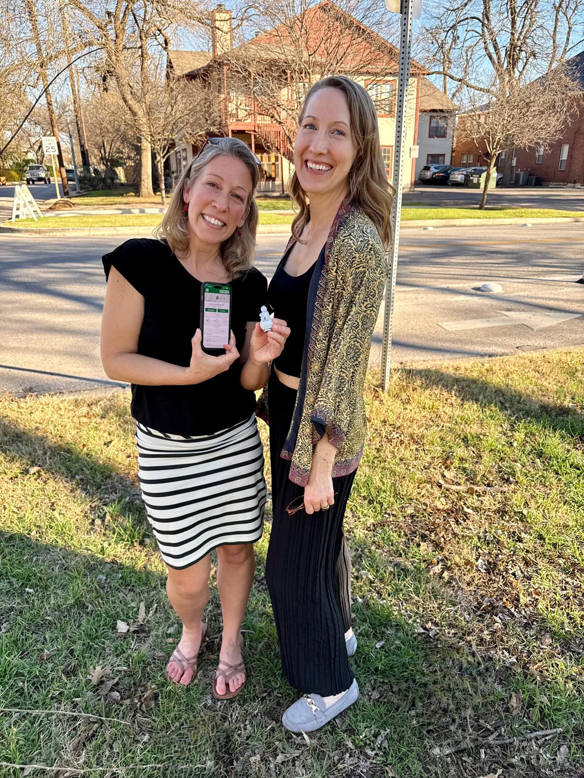 UPDATE: While walking to dinner in Hyde Park, Austin, we whipped out the app and I experienced the delight of my first geocache!